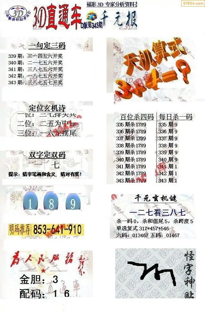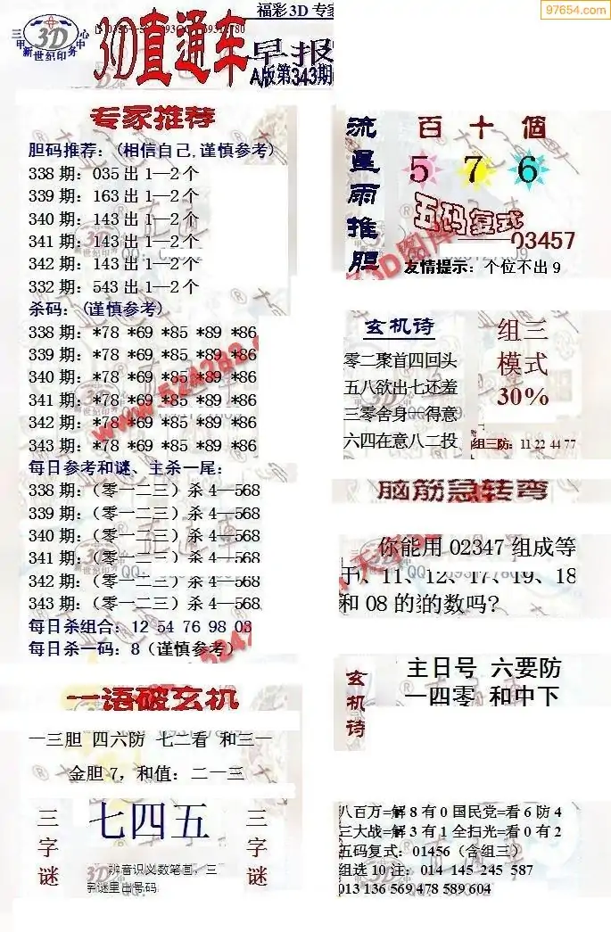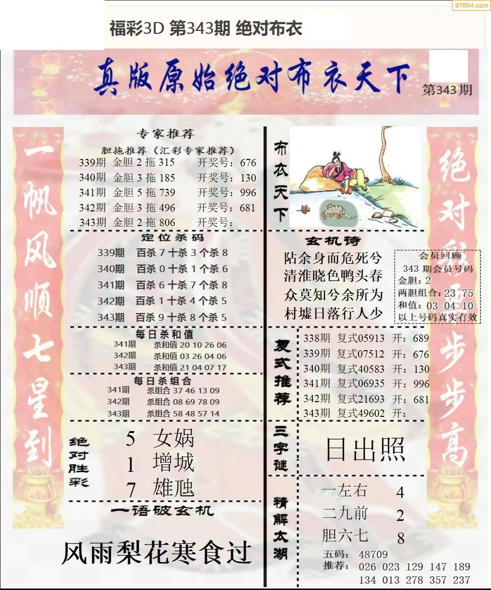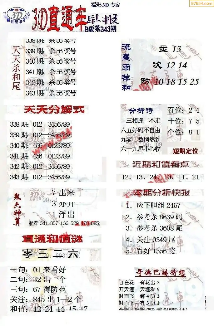 25年343期3d选号彩报图谜画谜