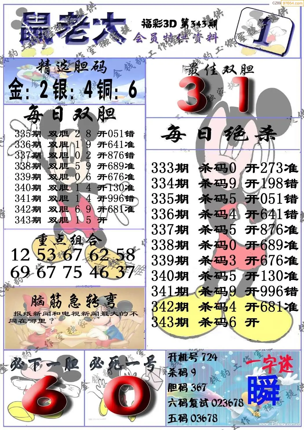 2025年343期福彩3d真鼠老大