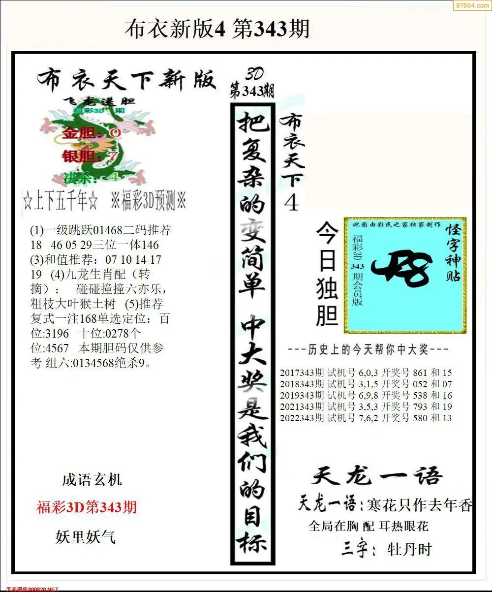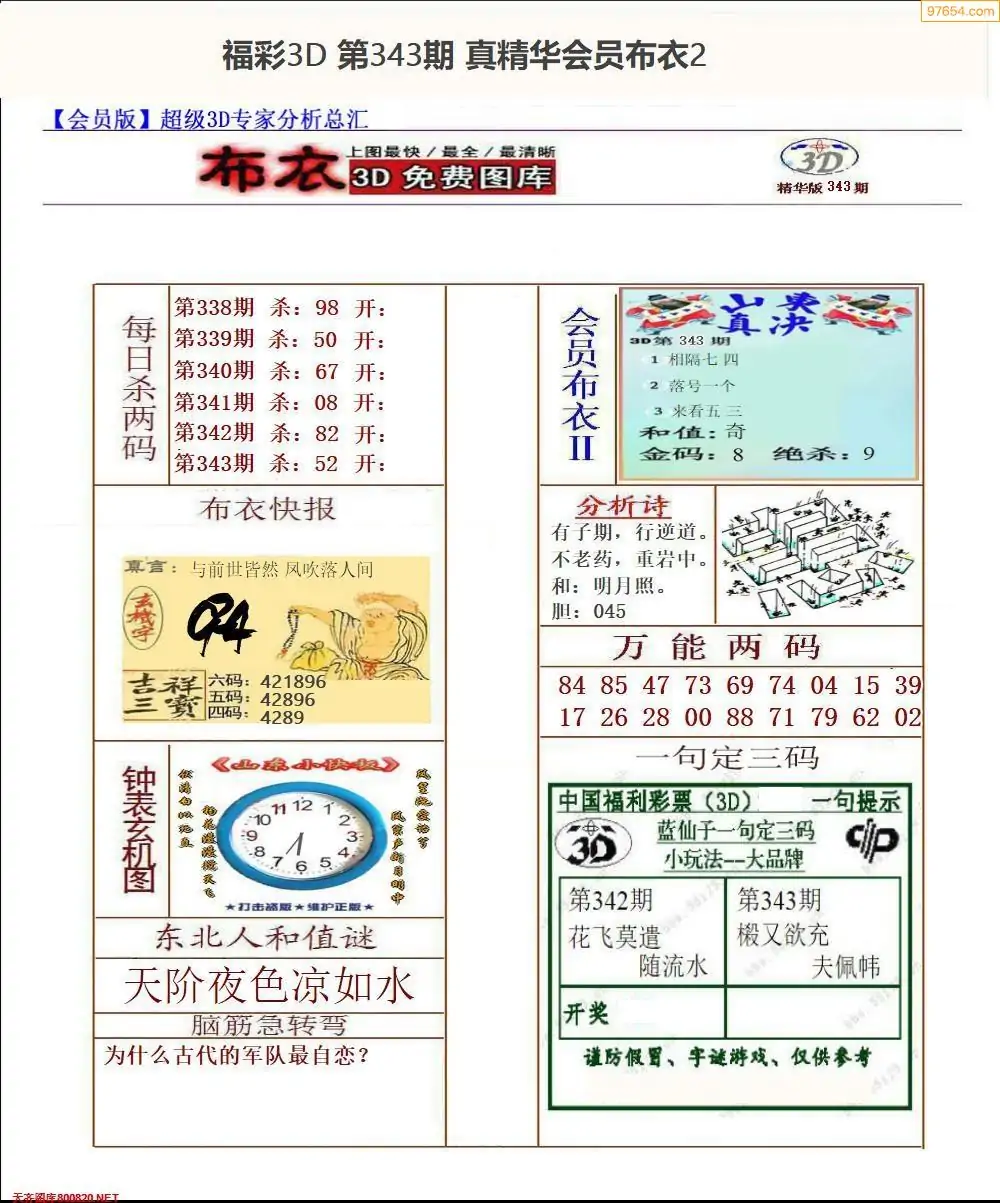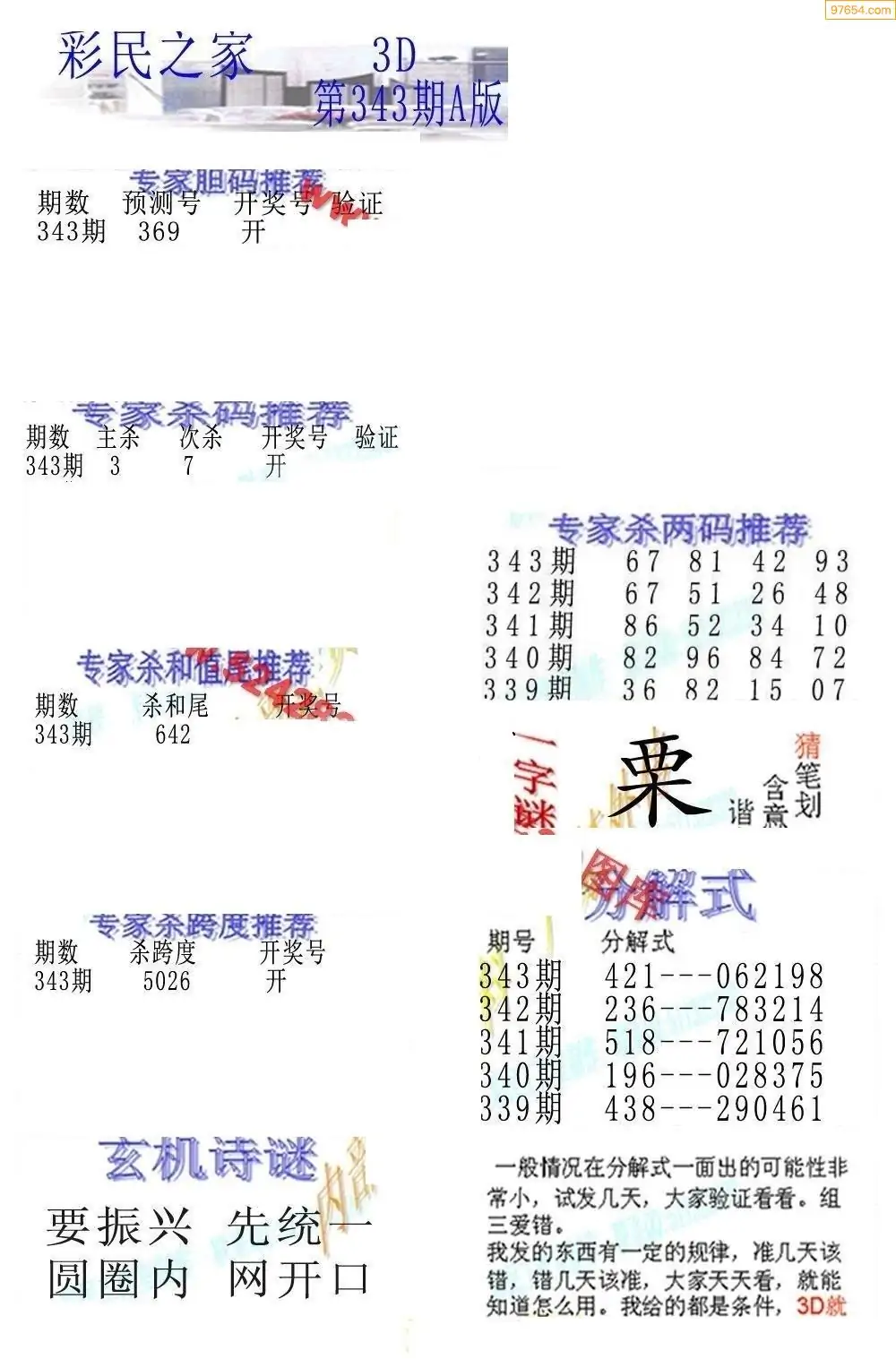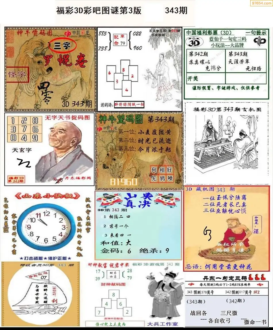 (3)2025343期3D预测总汇全图_福彩3d图谜字谜总汇