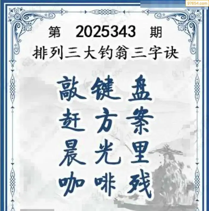 25年体彩p3第343期大钓翁三字诀