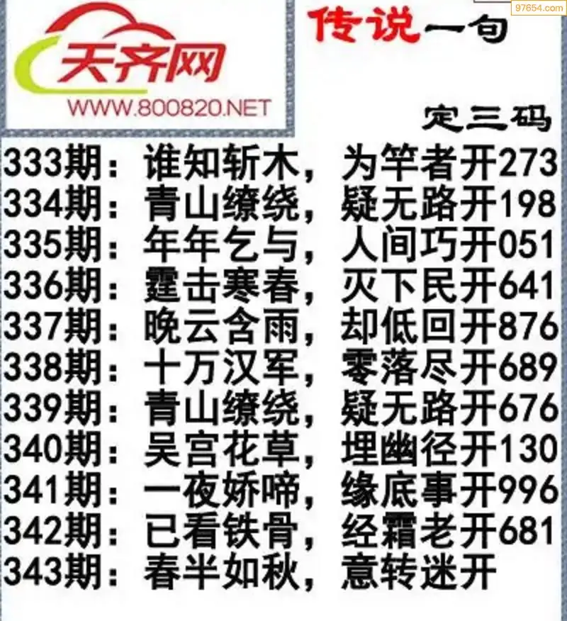 福彩3d25年343期字谜传说一句定三码