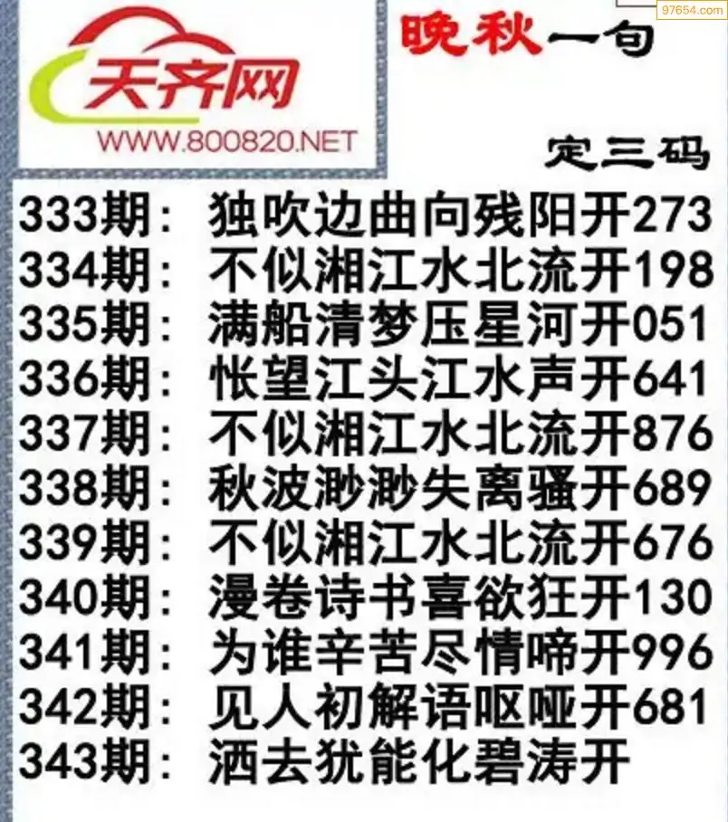 343期3d福彩今日晚秋字谜一句定三码