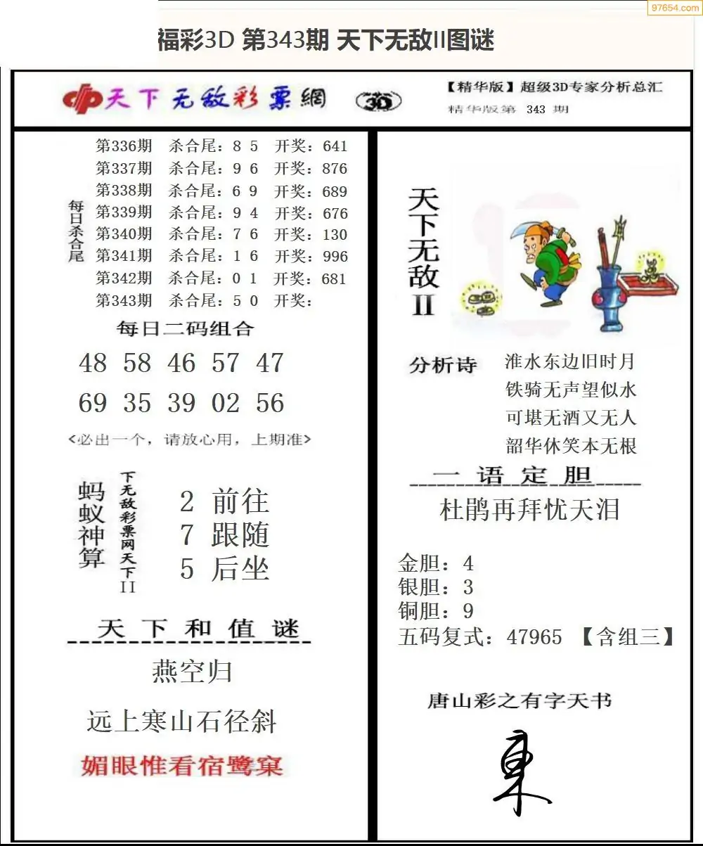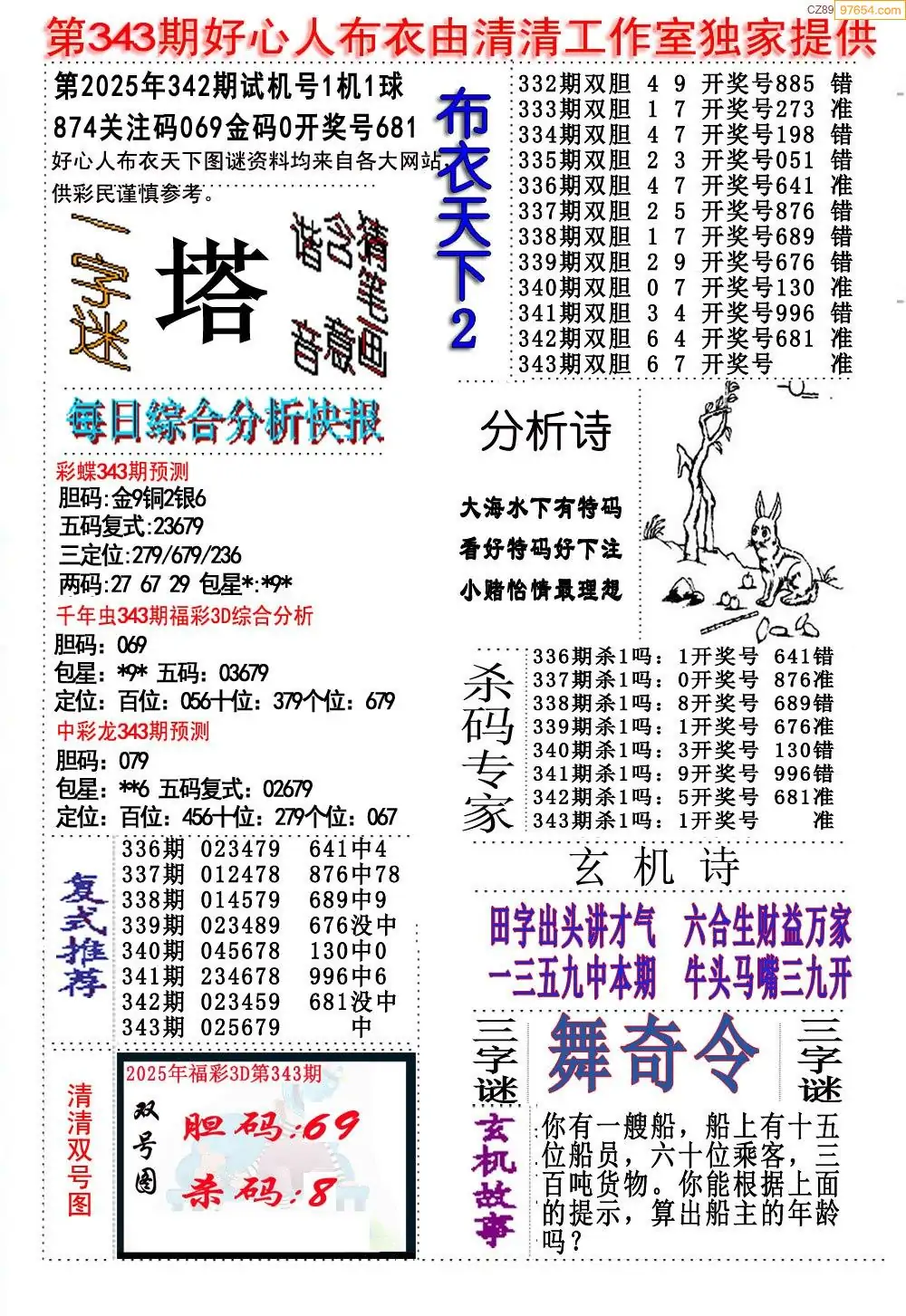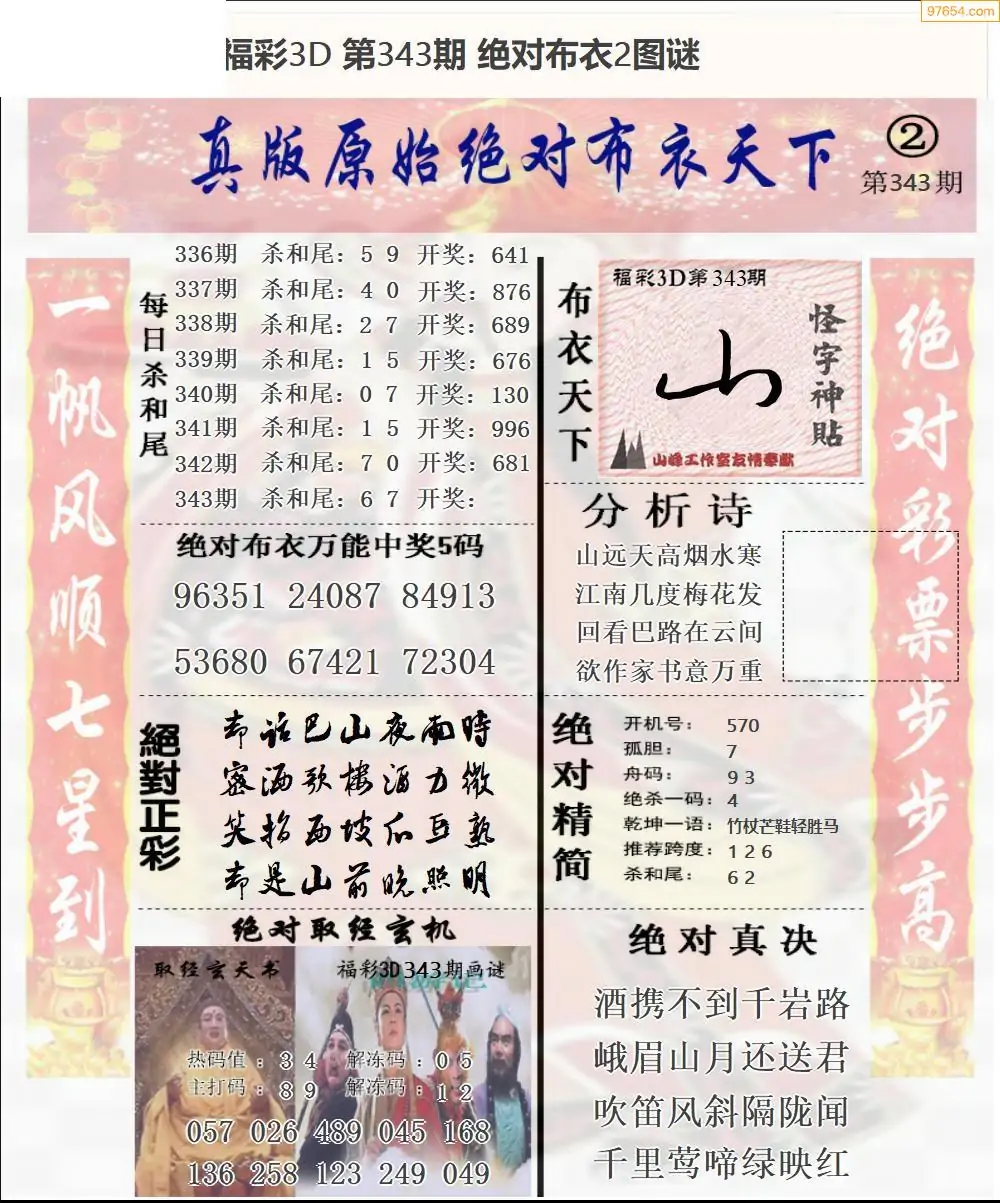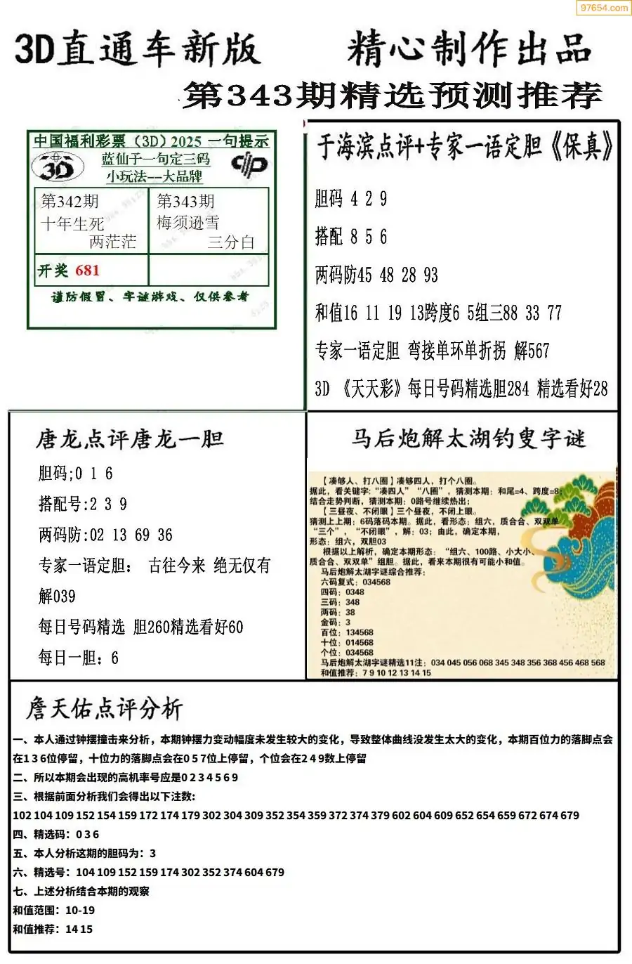 (2)25年343期本期3d图迷汇总_福彩3D图谜总汇图
