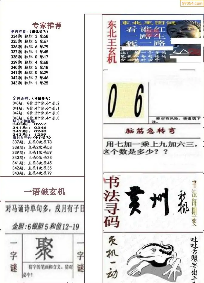 (3)2025342期3D预测总汇全图_福彩3d图谜字谜总汇