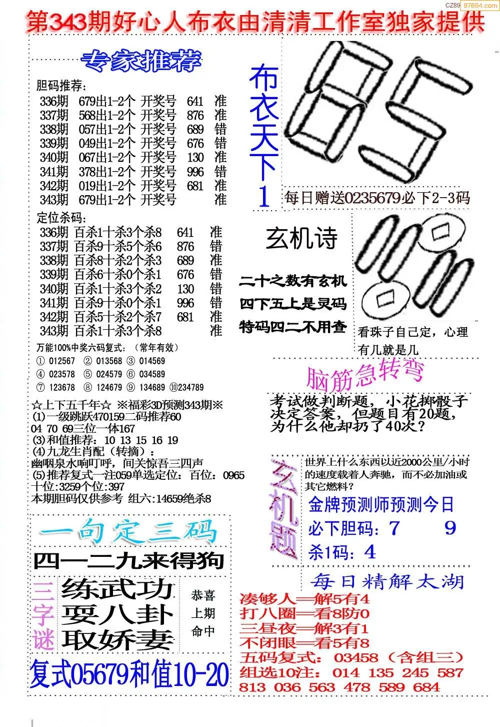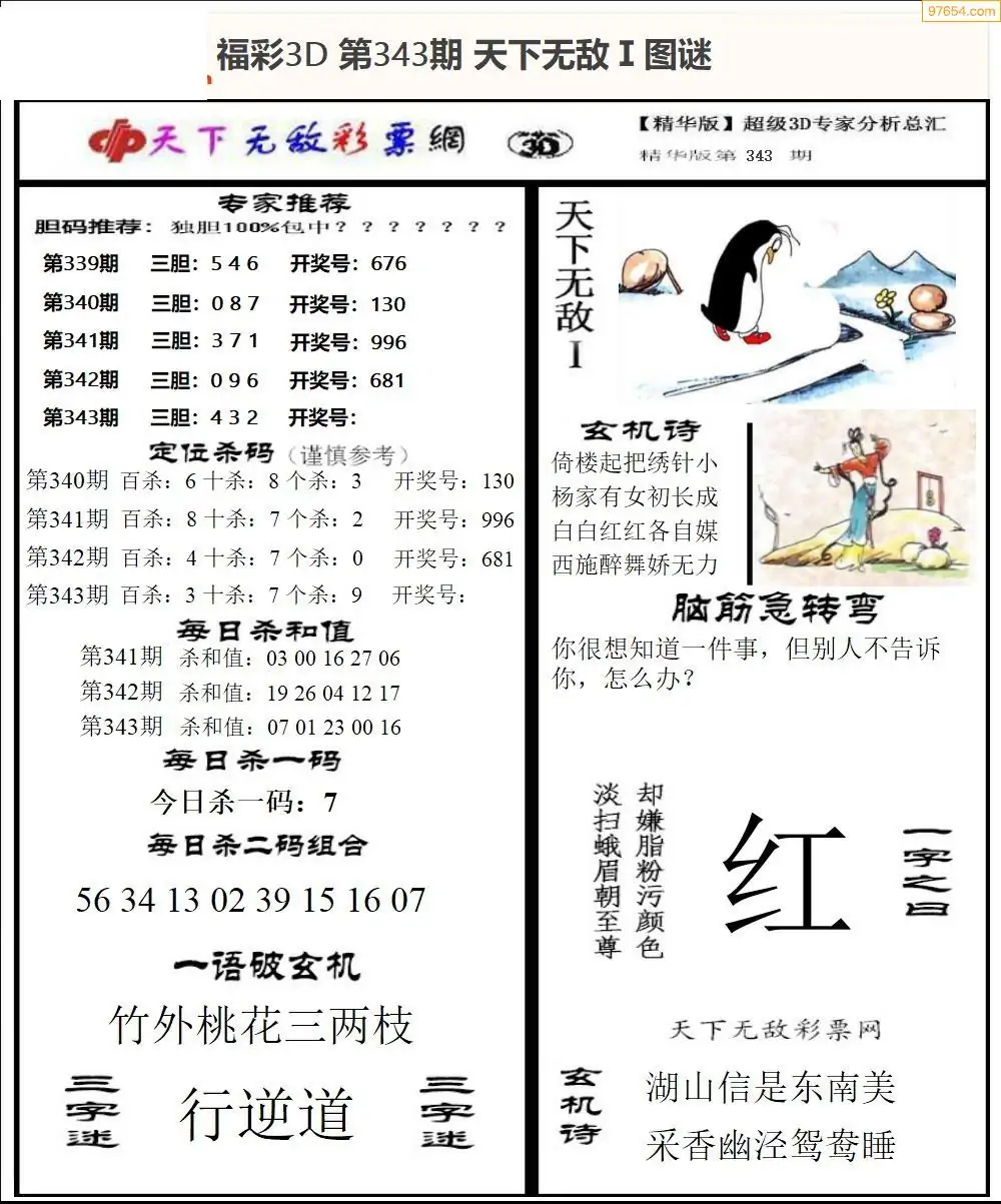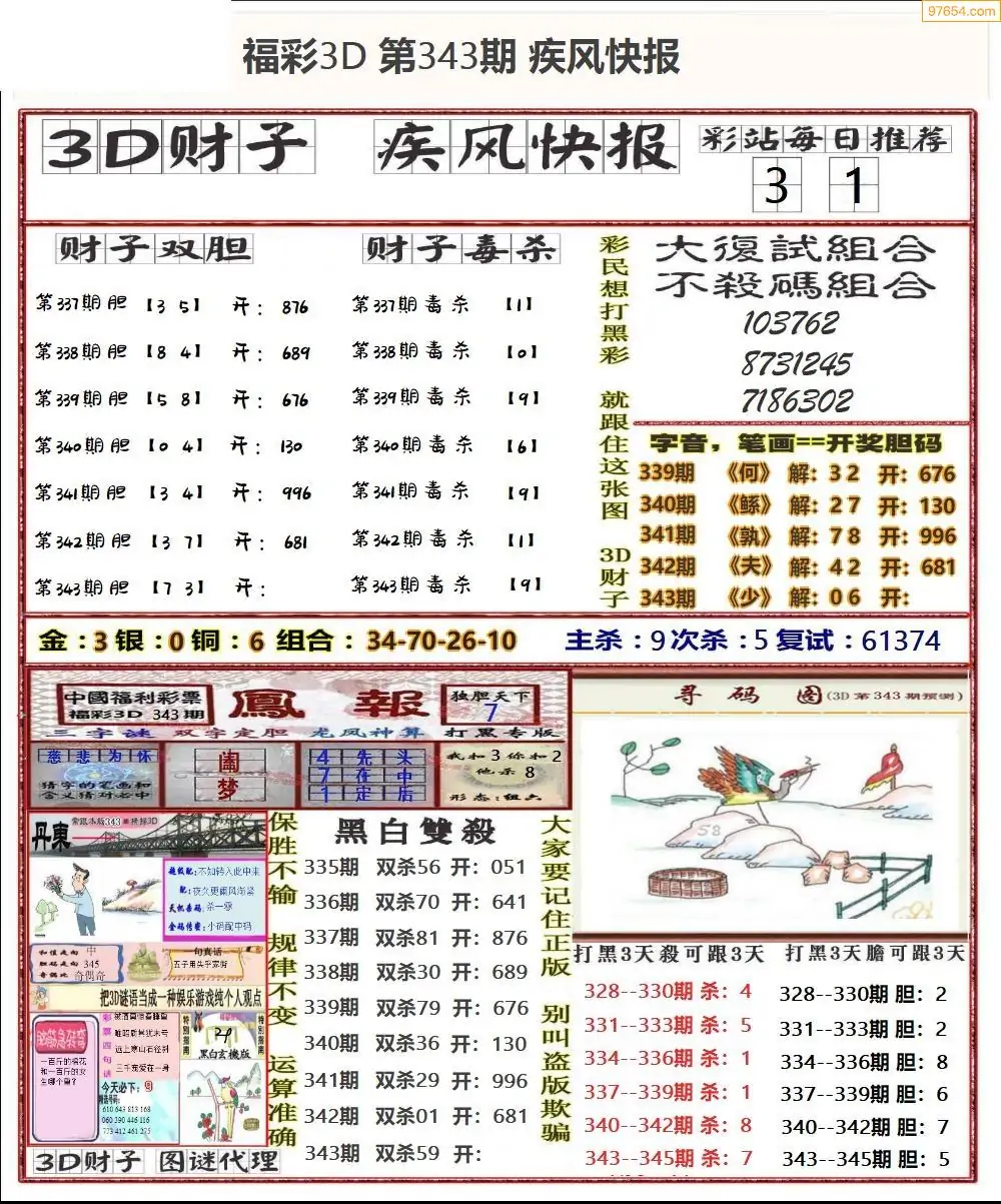 (3)2025343期3D预测总汇全图_福彩3d图谜字谜总汇