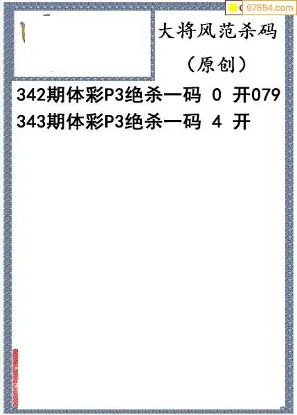 25年343期大将风范p3杀码体彩图谜