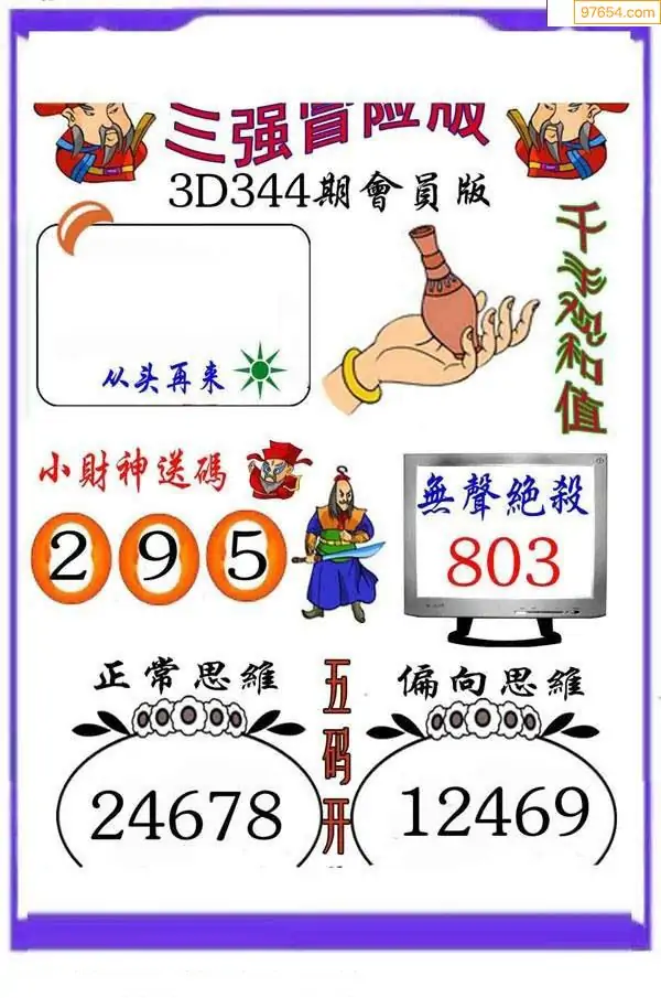 25年344期财神说彩3D综合图(原创)_3d财神到财神送胆