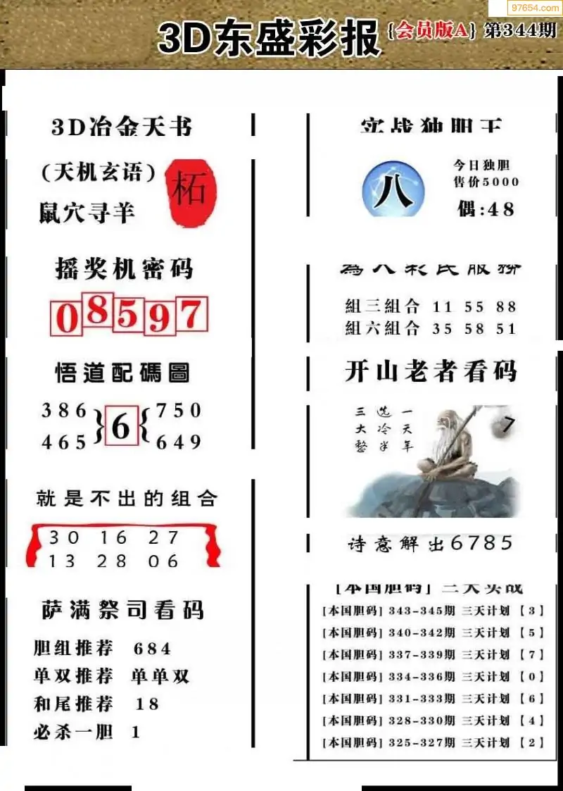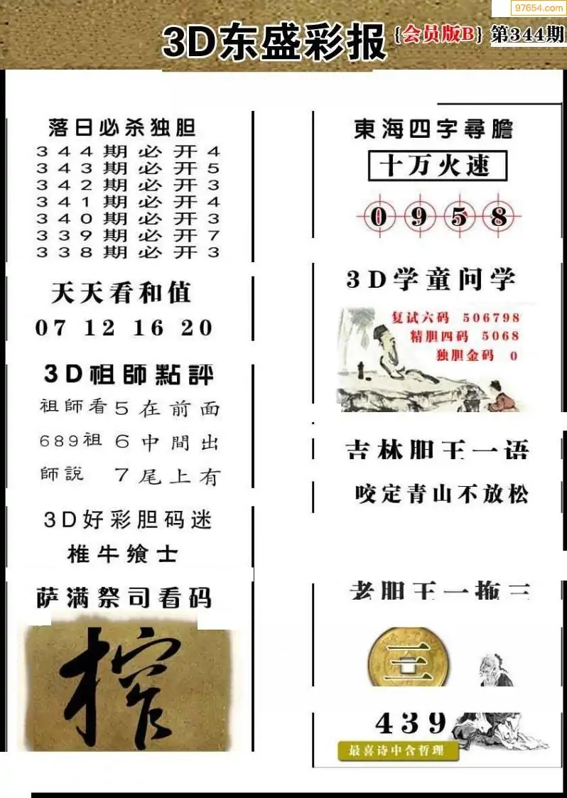 25344期今日3d三毛四版+东盛会员报