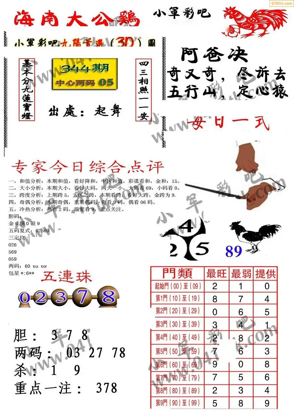 25344期海南大公鸡福彩图谜