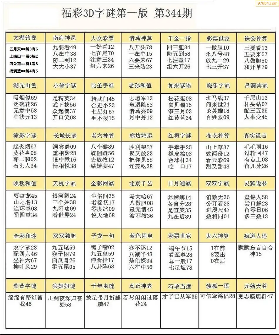 344期3D牛彩预测报+彩吧字谜报