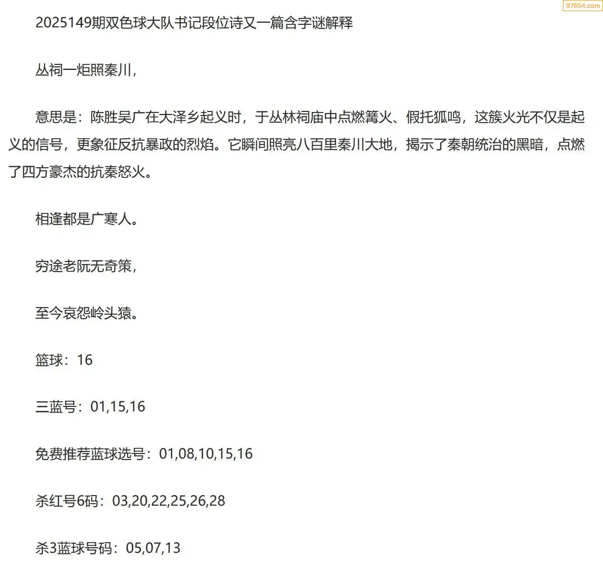 149期牛彩双色球字迷诗迷汇总(天中整理)