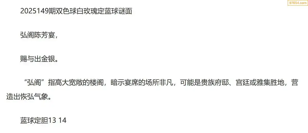白玫瑰双色球25年149期定蓝球字谜