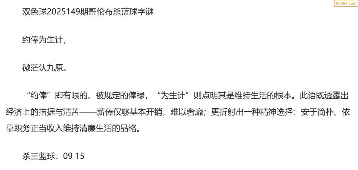 大队书记双色球25年149期段位诗谜