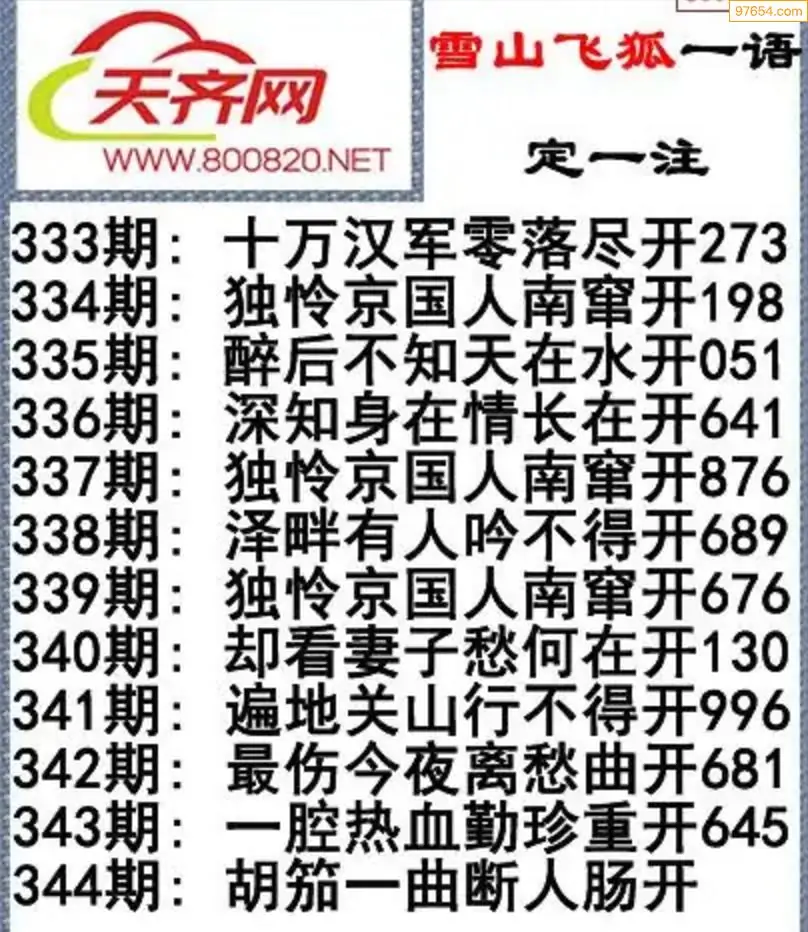 彩票3d字谜344期雪山飞狐一语定一注