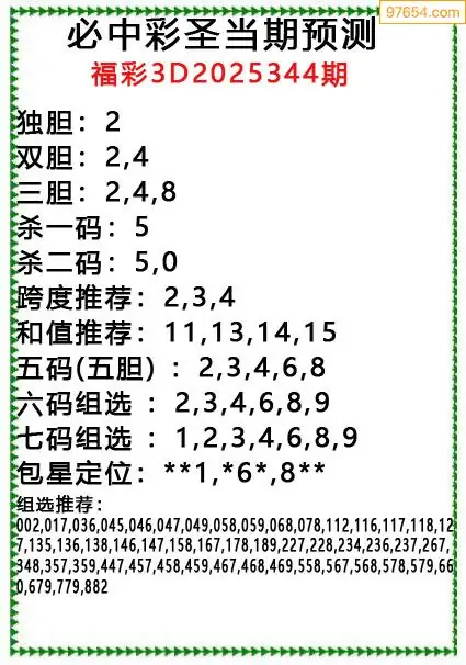 (3)2025344期3D预测总汇全图_福彩3d图谜字谜总汇