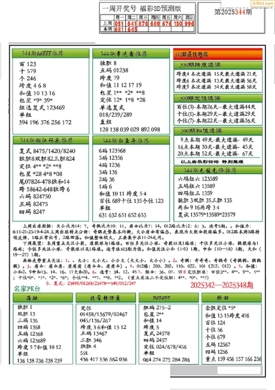 25344期彩彩福彩3d一句定三码