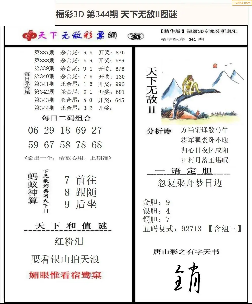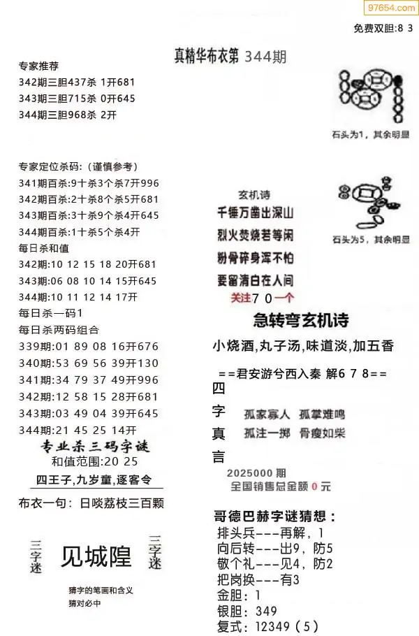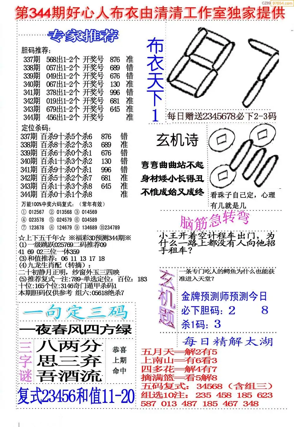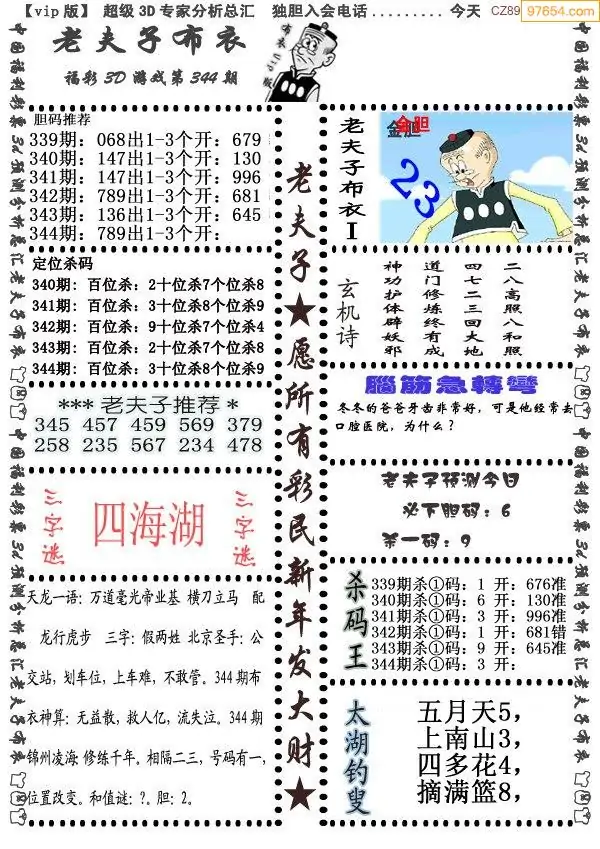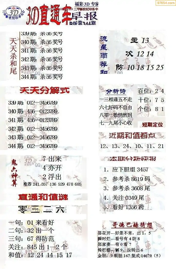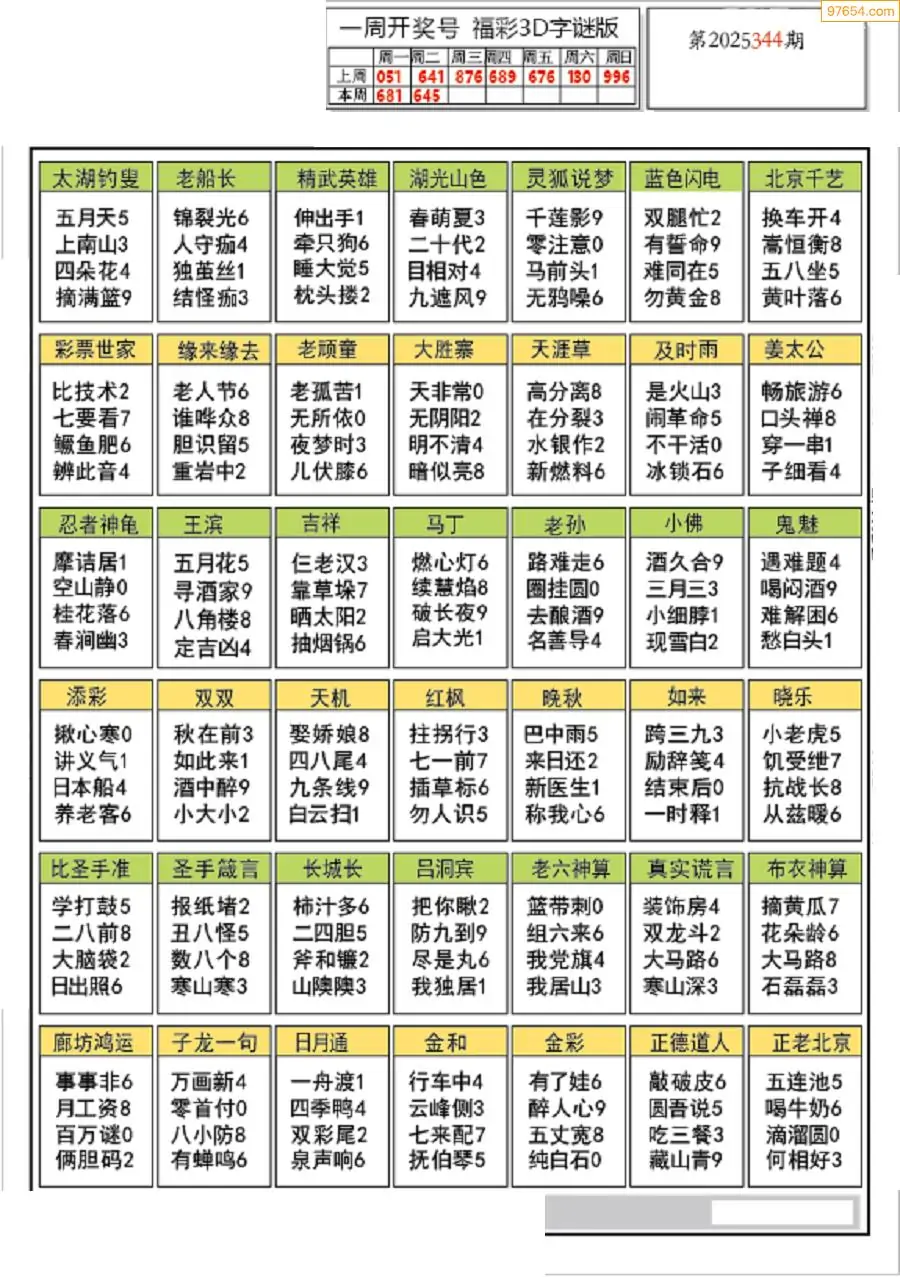 (3)2025344期3D预测总汇全图_福彩3d图谜字谜总汇