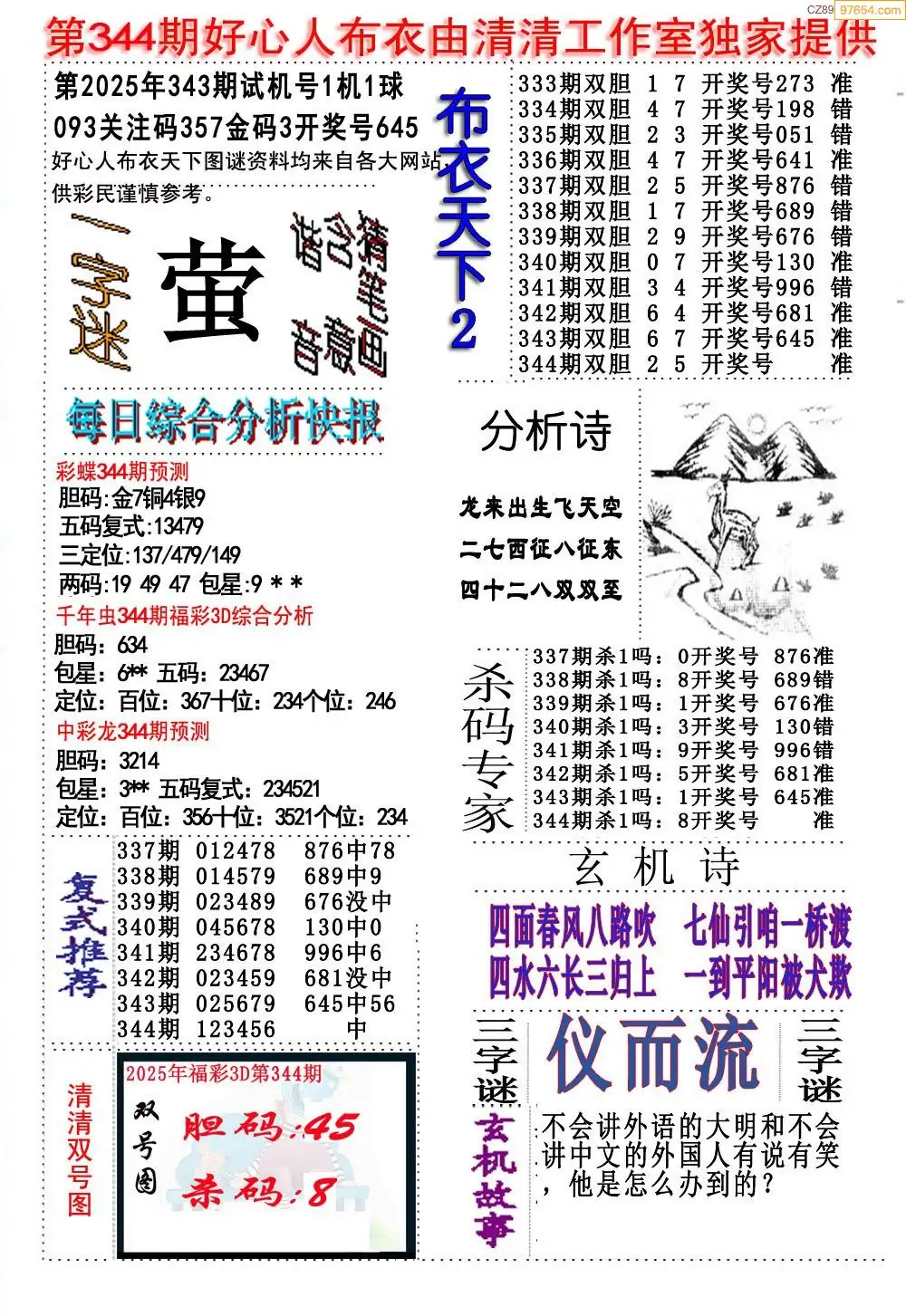 (2)25年344期本期3d图迷汇总_福彩3D图谜总汇图
