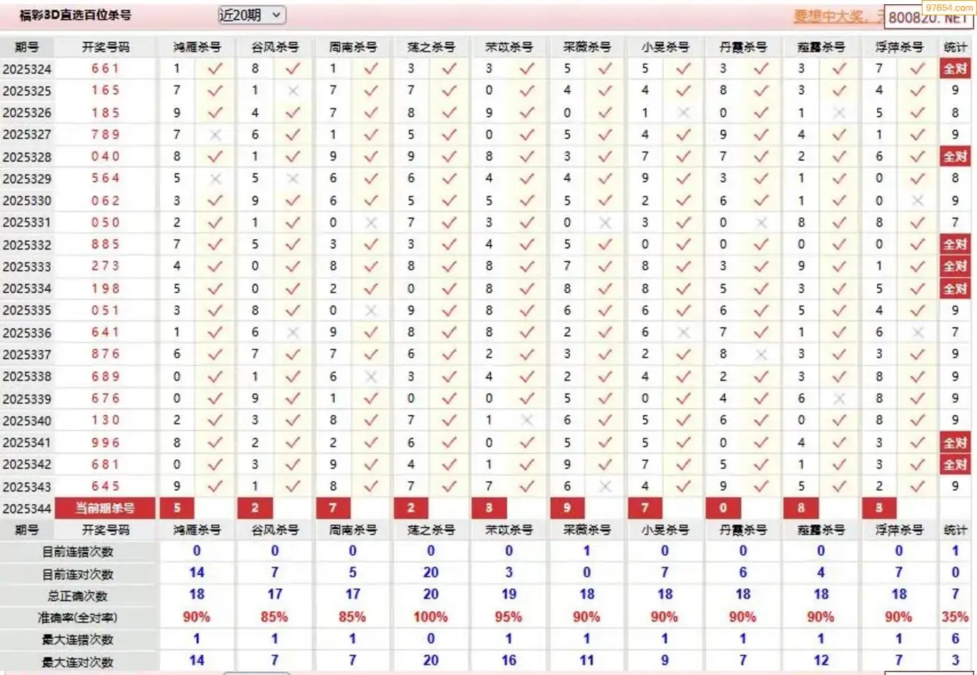 25-344期福彩3d桂子飘香杀码预测 8连中