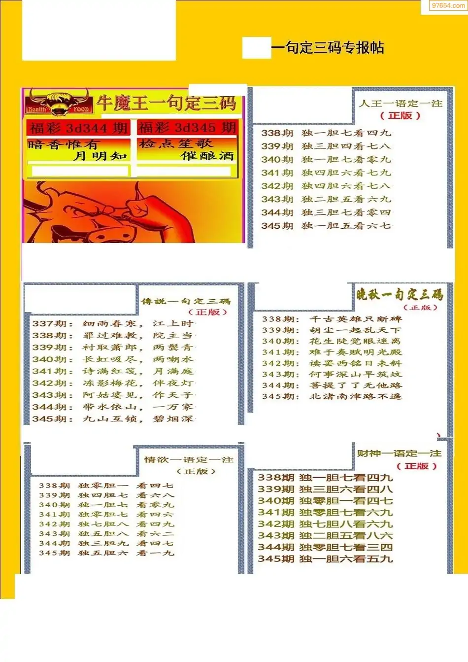 福彩3D016期天牛彩吧套图整合总汇