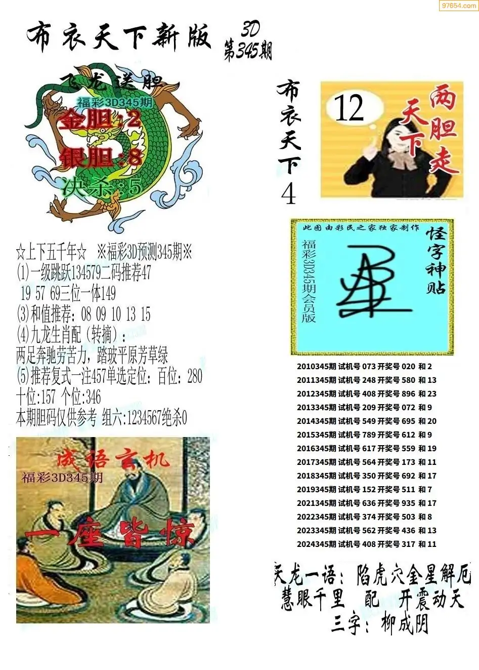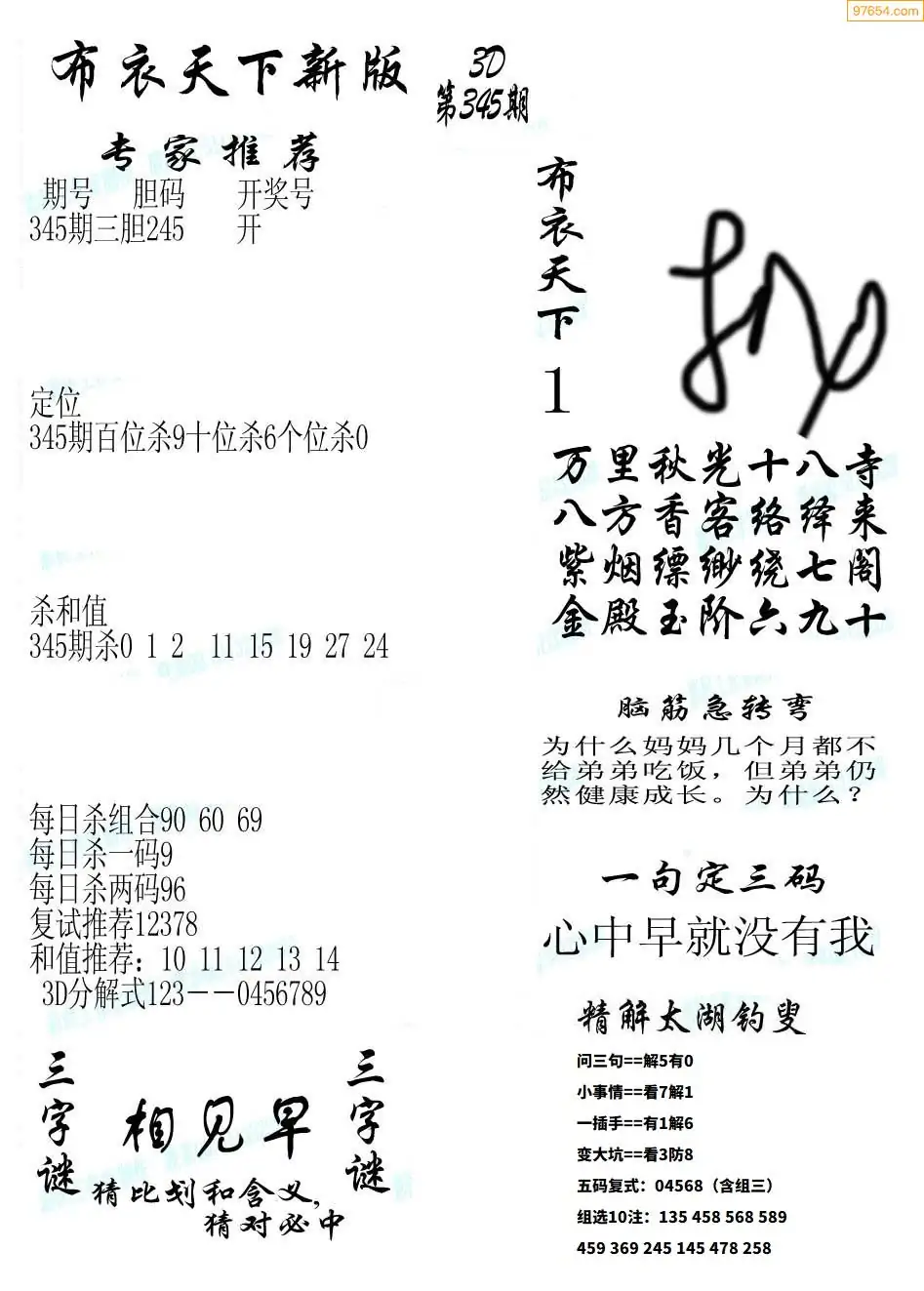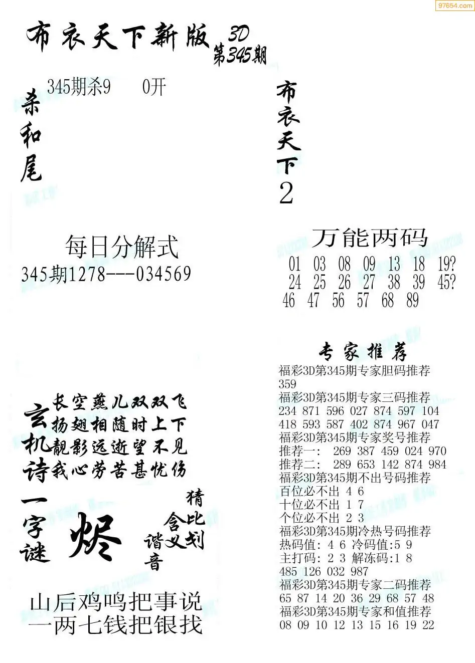 福彩345期3d真精华布衣+布衣早报(转载)