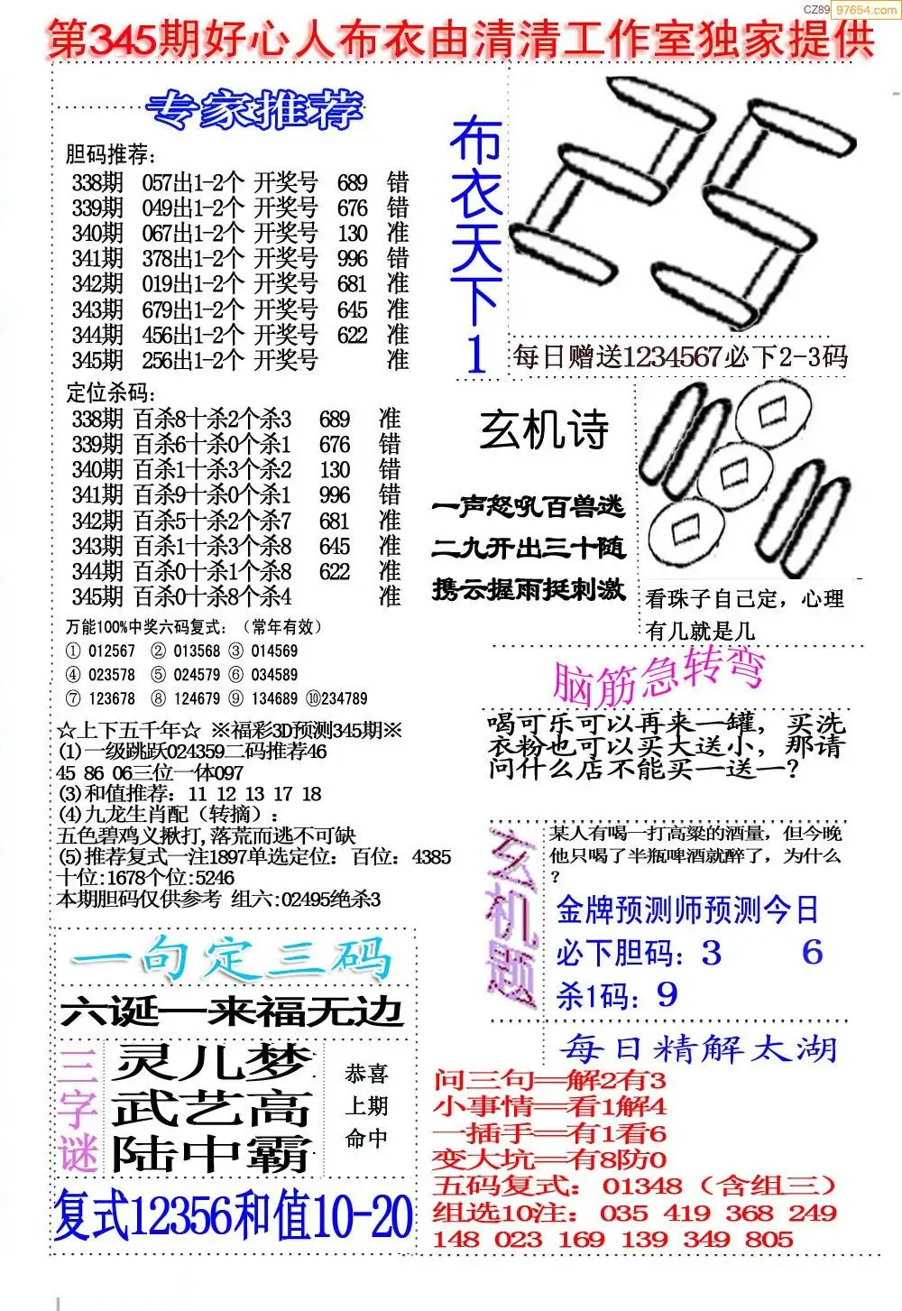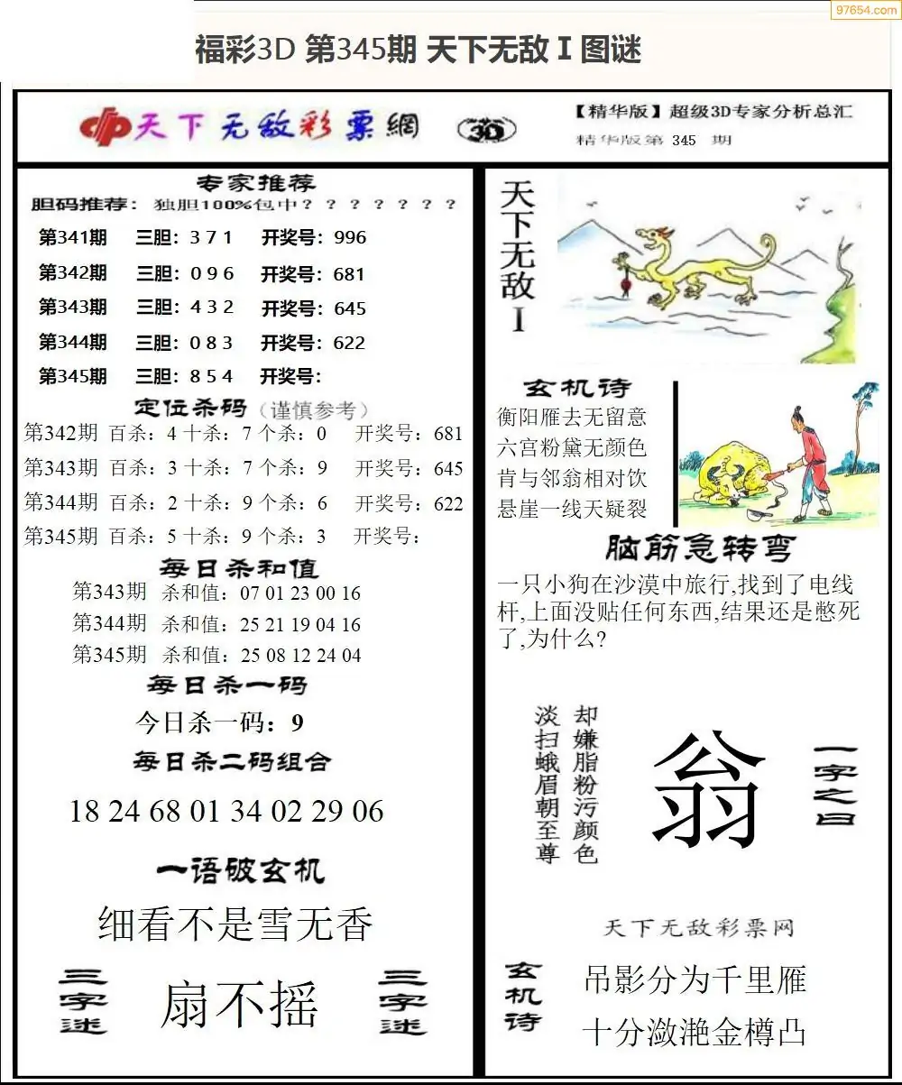 (3)2025345期3D预测总汇全图_福彩3d图谜字谜总汇