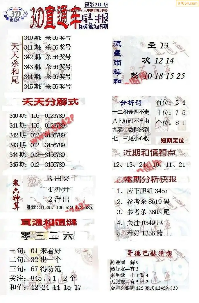 (2)25年345期本期3d图迷汇总_福彩3D图谜总汇图