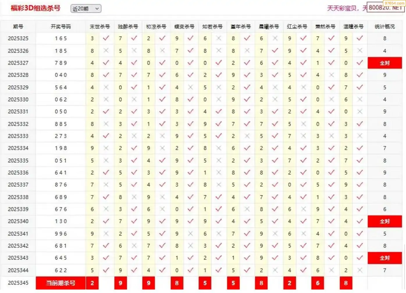 胡八一3d25年346期杀号一胆 11连中