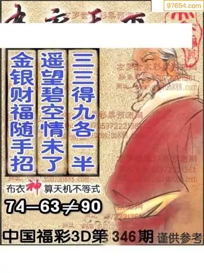 25年346期财神说彩3D综合图(原创)_3d财神到财神送胆
