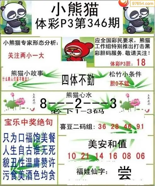 346期清清漫玄系列体彩p3图谜_p3图谜汇总看点