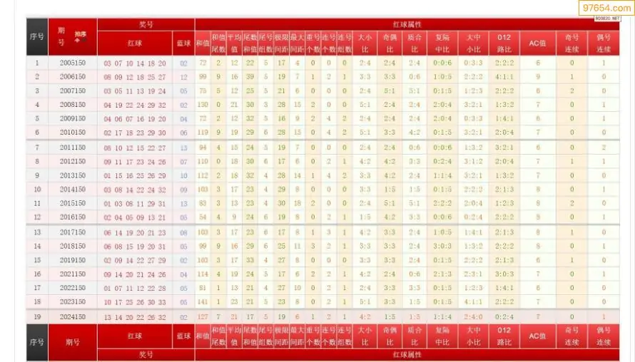 150期双色球历史同期图表+走势图