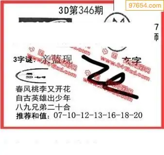 (3)2025346期3D预测总汇全图_福彩3d图谜字谜总汇