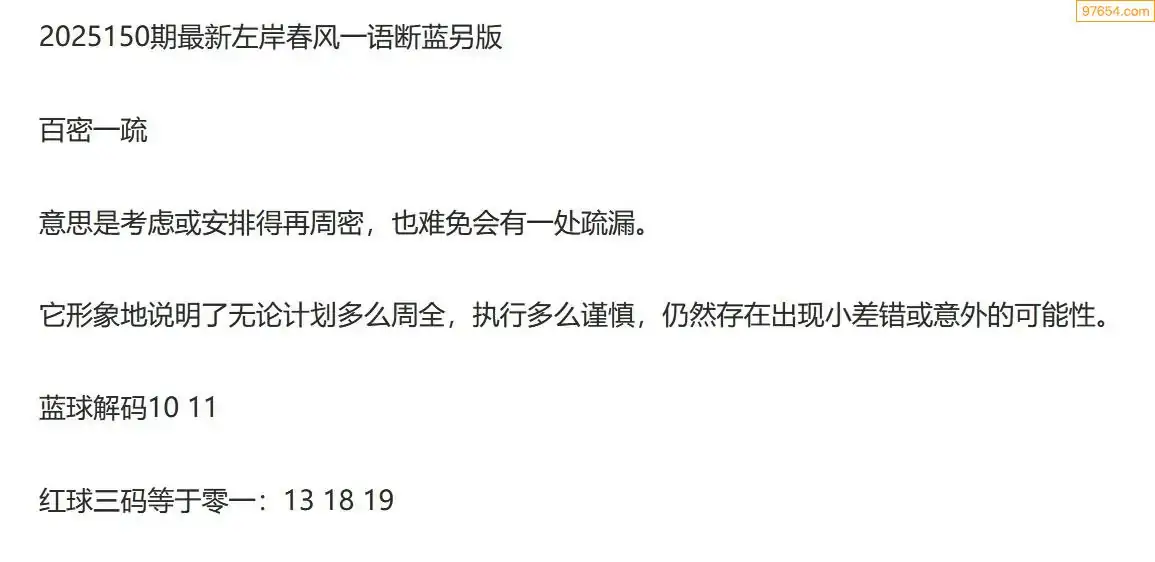左岸春风另版双色球25年150期一语断蓝