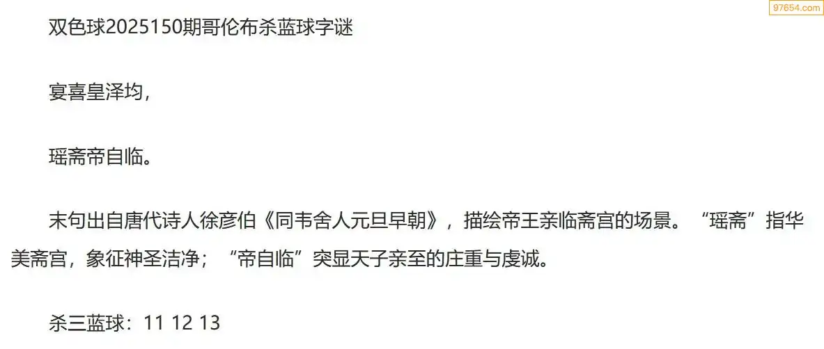 哥伦布双色球25年150期一句杀蓝球字迷