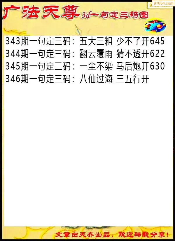 (3)2025346期3D预测总汇全图_福彩3d图谜字谜总汇