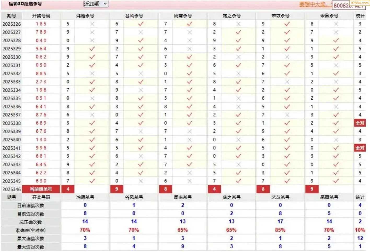 福彩3D盐都杂谈25年346期杀码猜想 10连中