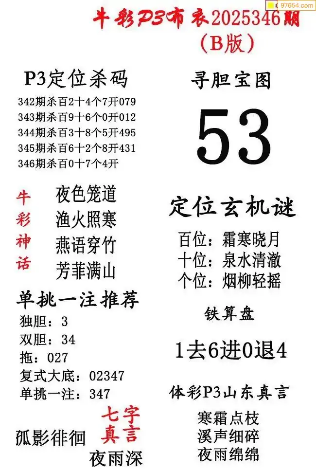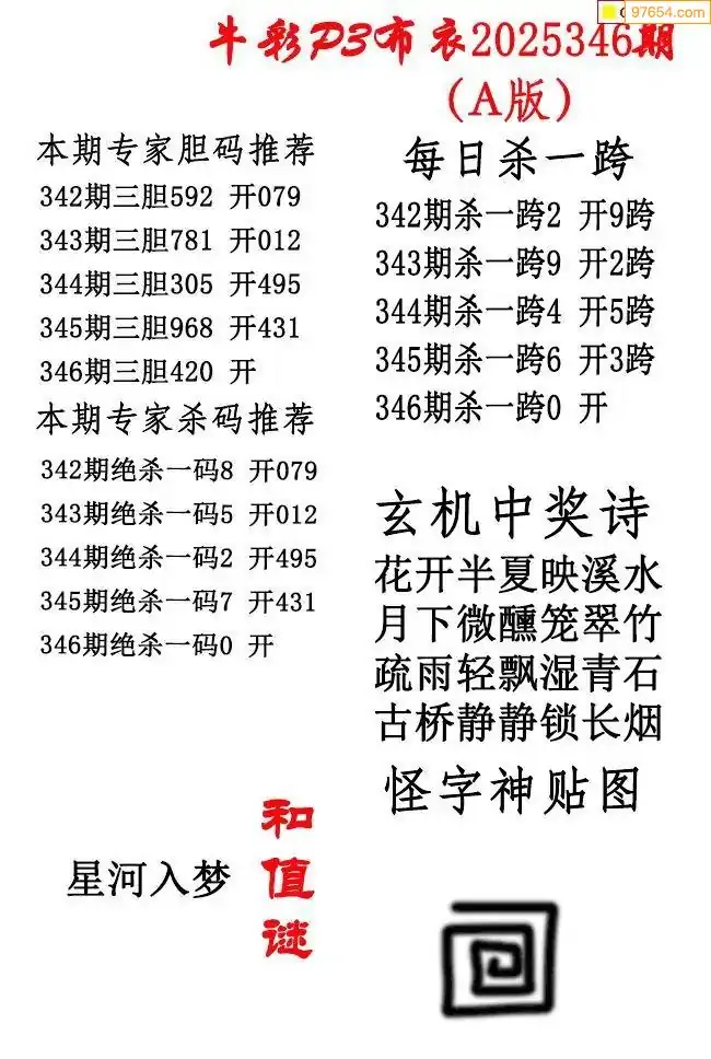 346期清清漫玄系列体彩p3图谜_p3图谜汇总看点