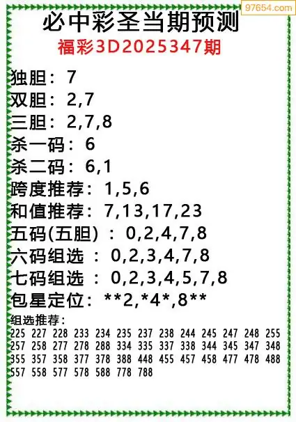 原创彩圣分析347期3D出号规律