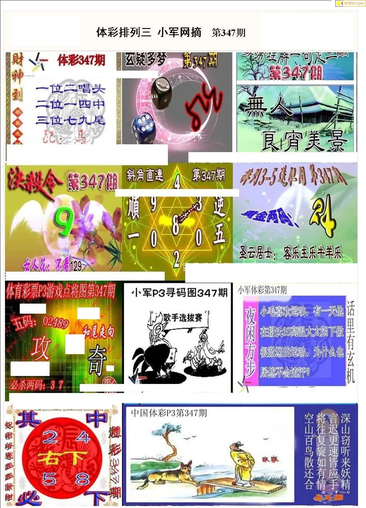 2025347期彩友图迷汇总_体彩排列3字谜图谜汇总专辑