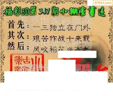 (3)2025347期3D预测总汇全图_福彩3d图谜字谜总汇