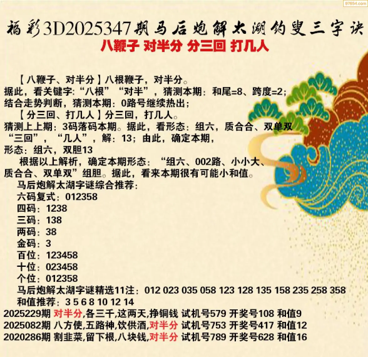 25347期福彩3d太湖钓叟三字诀历史汇总