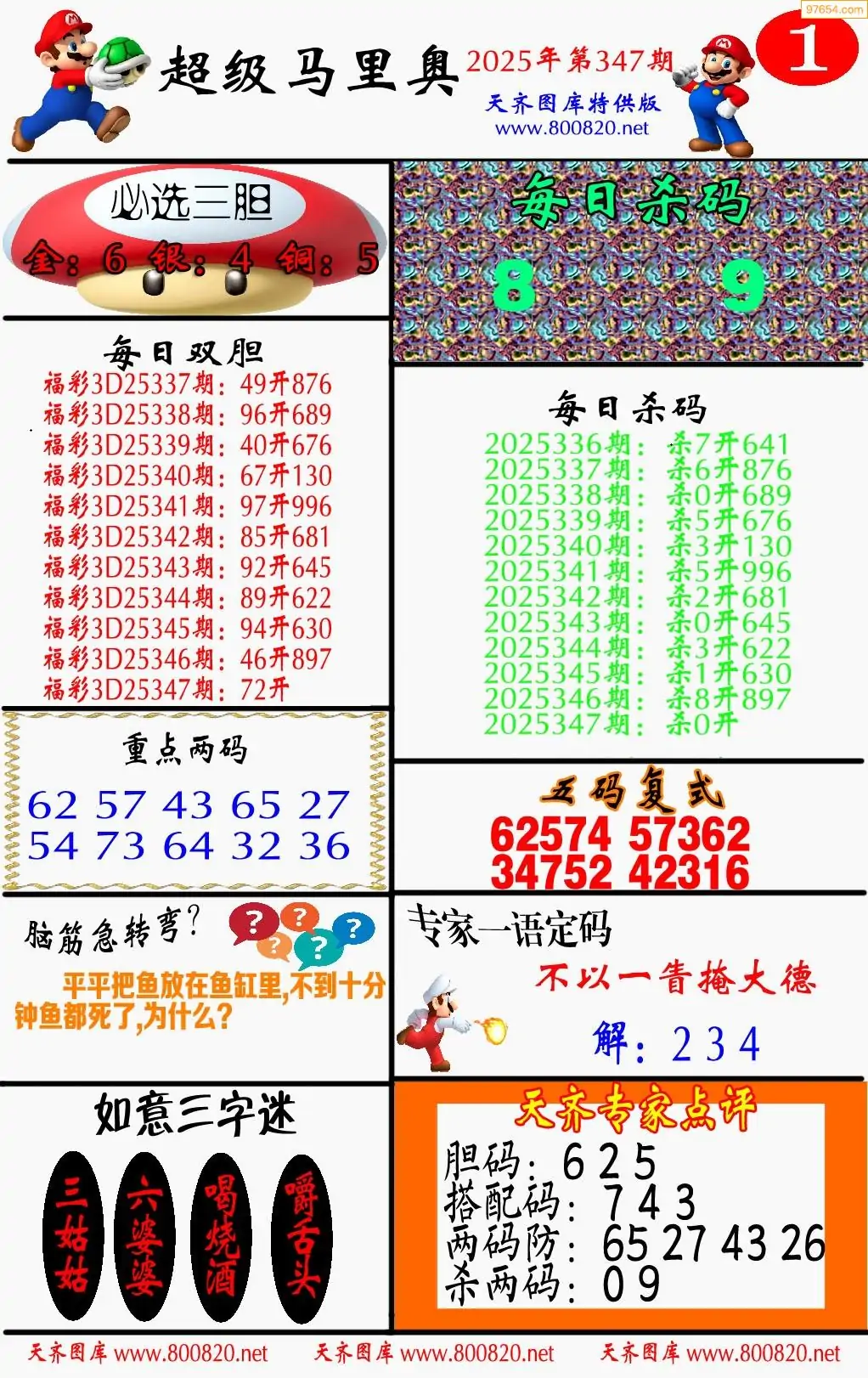 3d福彩347期马里奥两版彩报