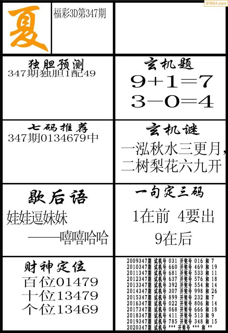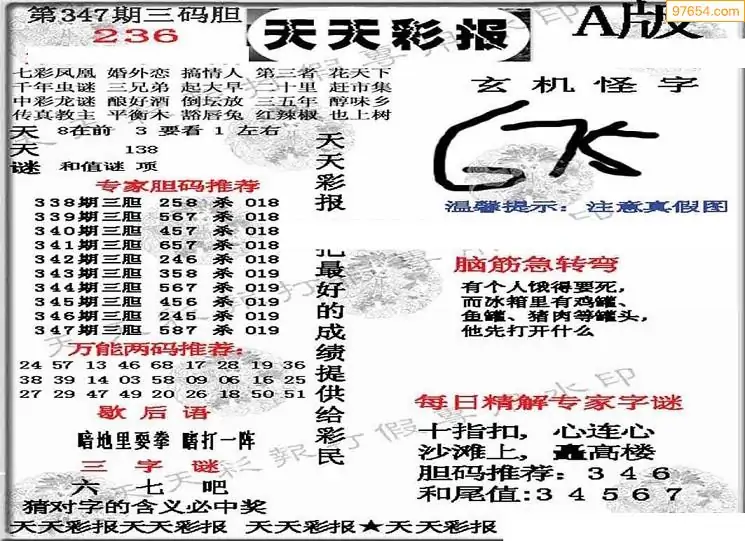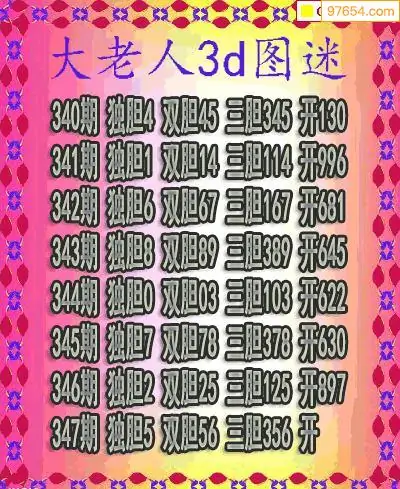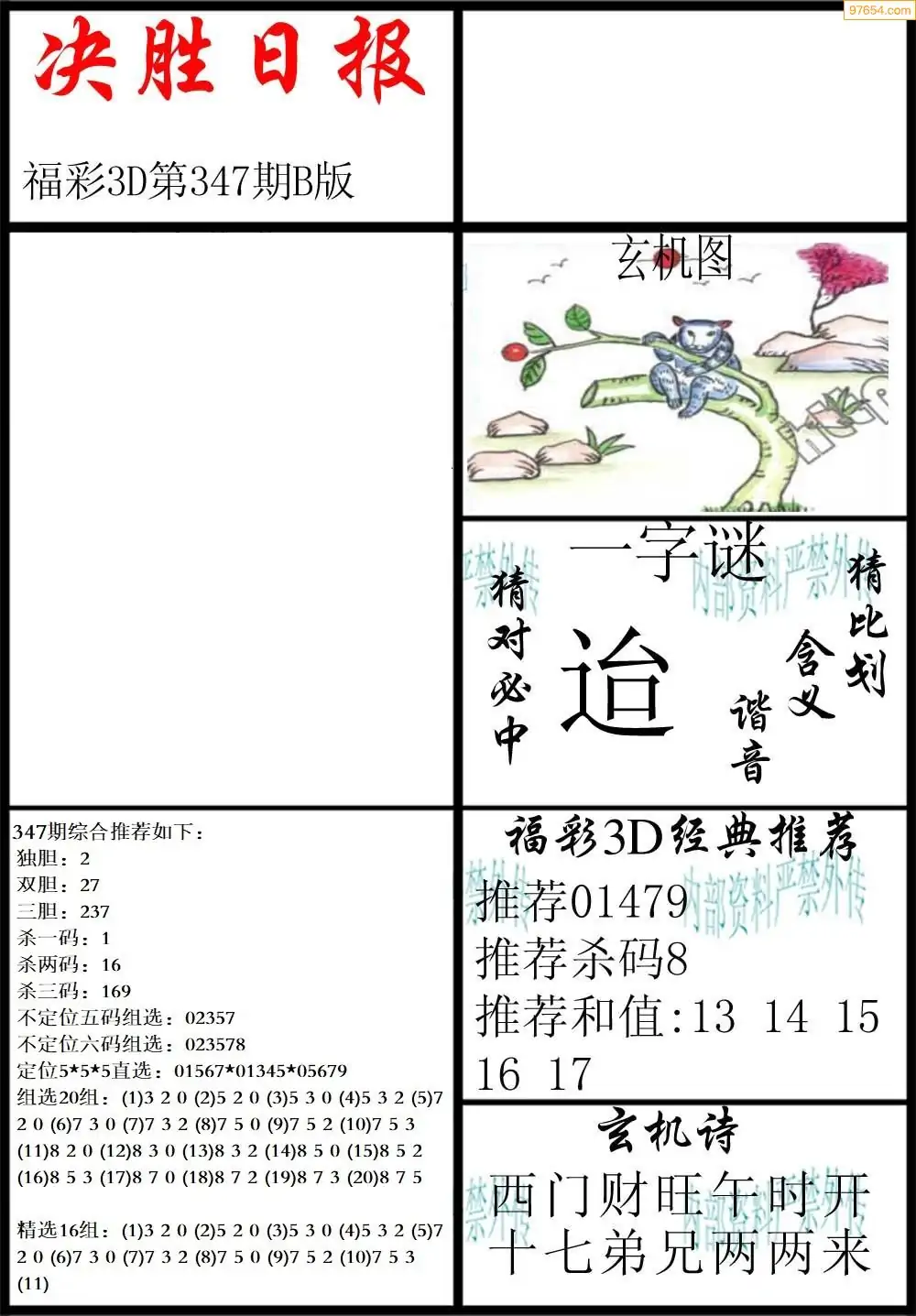 (3)2025346期3D预测总汇全图_福彩3d图谜字谜总汇