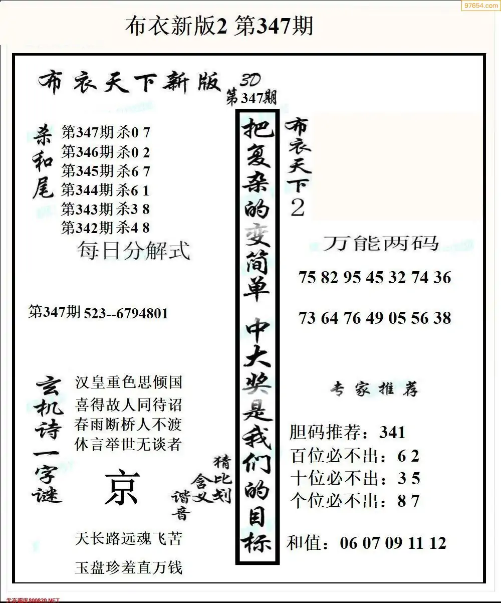 (2)25年347期本期3d图迷汇总_福彩3D图谜总汇图