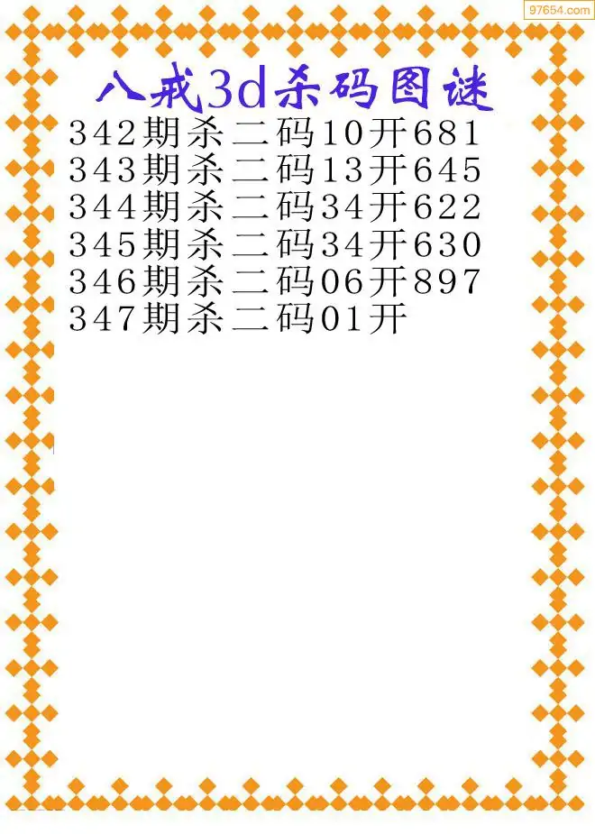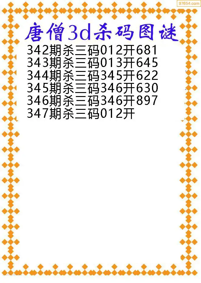(3)2025346期3D预测总汇全图_福彩3d图谜字谜总汇