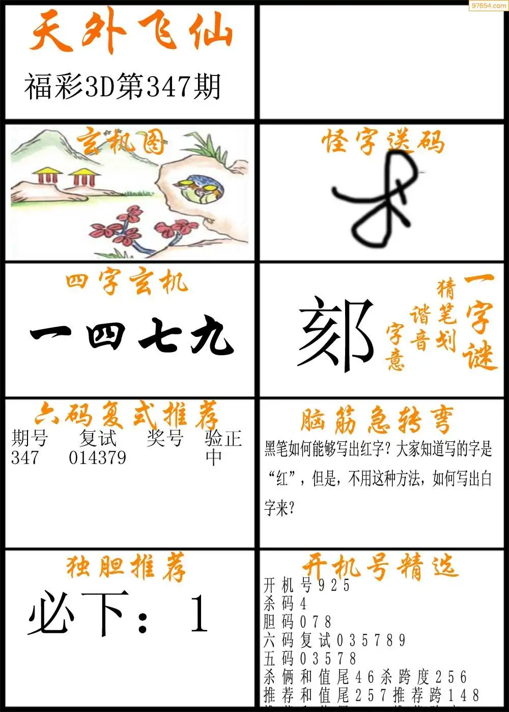 347期福彩3d天外飞仙B版