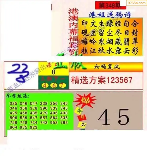 25年348期福彩仙姑综合图