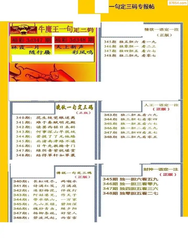 福彩3D012期天牛彩吧套图整合总汇