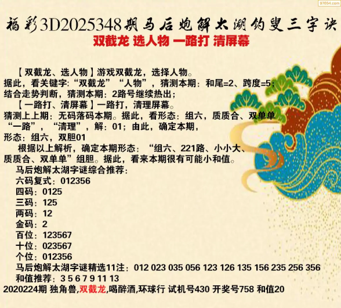 25年348期马后炮解3d太湖钓叟之 双截龙