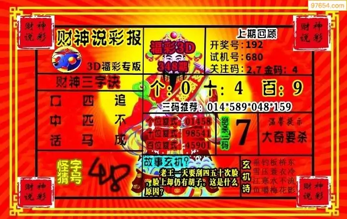 25年348期财神说彩3D综合图(原创)_3d财神到财神送胆